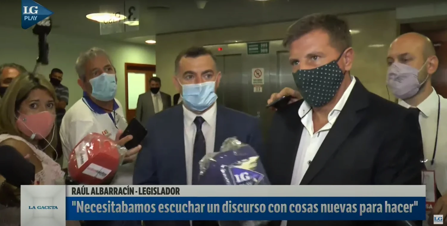 “Le llevó 12 minutos para abordar de modo superficial algunas cuestiones gubernamentales, cuando tenemos una situación crítica en cuanto a la calidad institucional, a la problemática económica y social, y a la inseguridad. No nos dio esperanza con su discurso”, dijo Raúl Albarracín.
