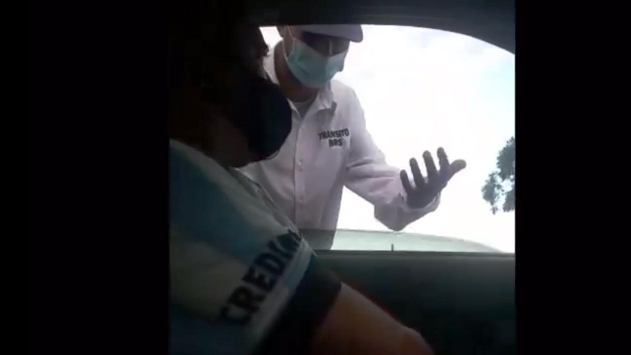 “¿No hay manera de evitar la multa?”, pregunta el chofer, mientras su acompañante filma la secuencia con su celular.
