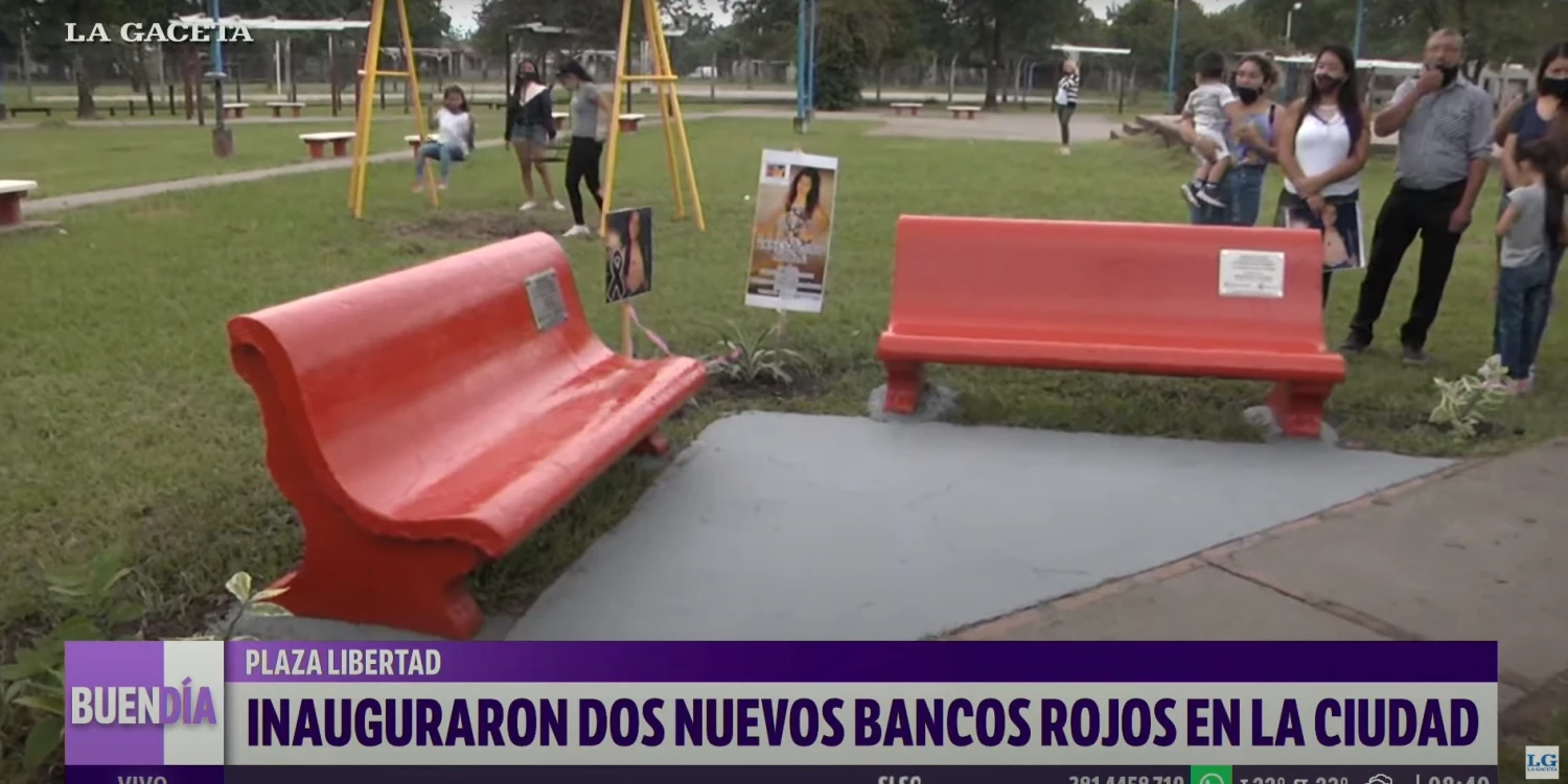 La Municipalidad de la capital inauguró dos bancos rojos en la plaza Libertad, ubicada en el barrio San Felipe, para recordar a dos víctimas de femicidios, Tamara Salas y Vanesa Lobo Noble. Este acto se concretó en el marco de la campaña contra la violencia de género que lleva adelante la intendencia.