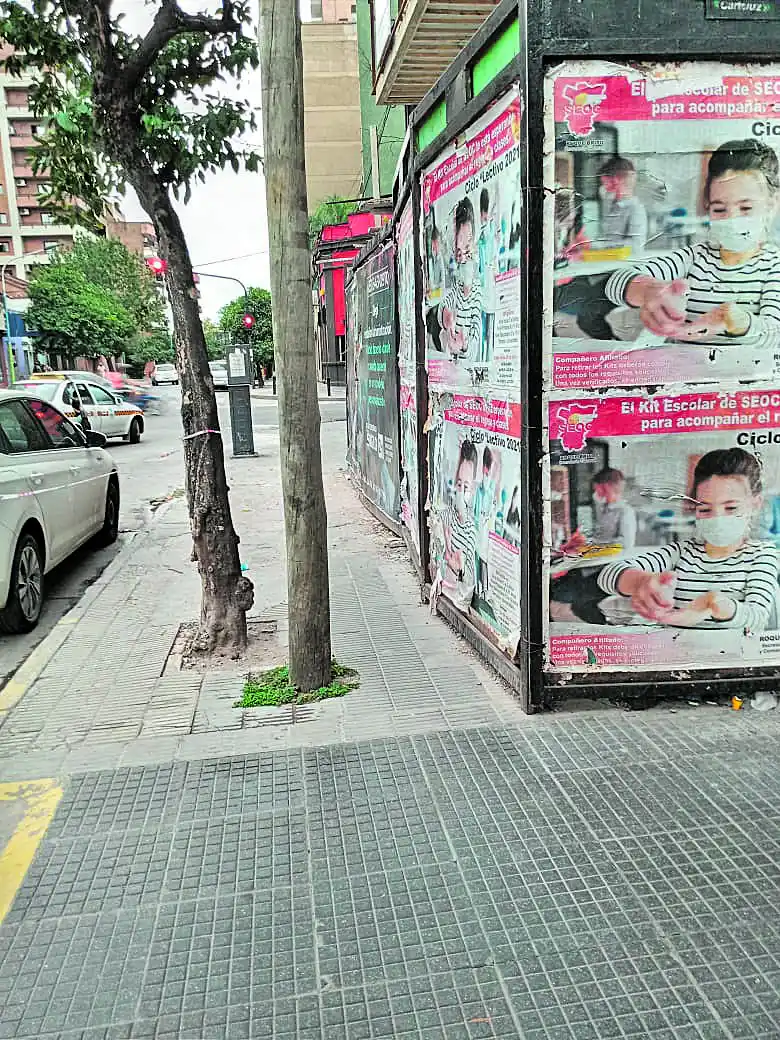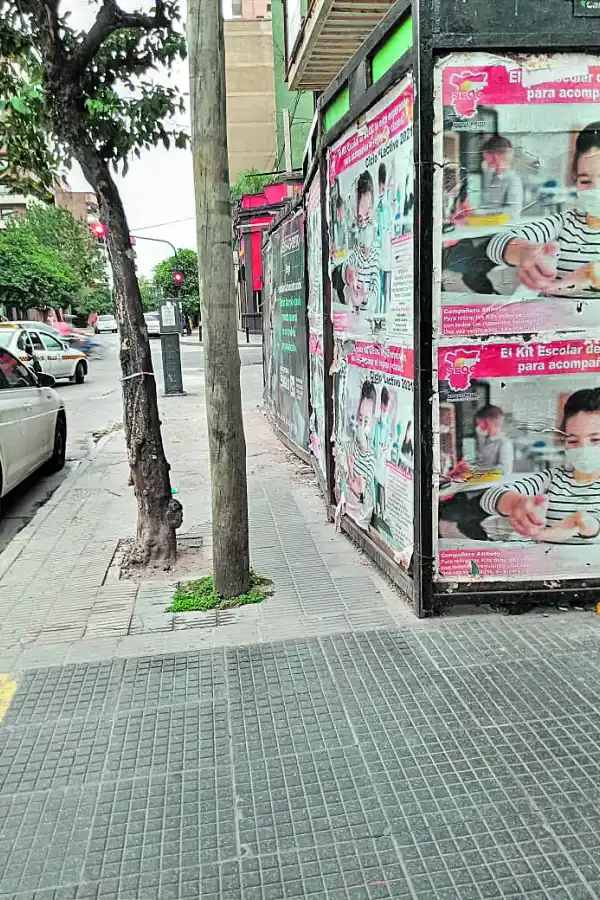 Una mamá con bebé en cochecito no pasa por esta vereda con una valla por una obra en construcción, dice la lectora que sacó la fotografía, que agrega que es un problema que ya lleva cinco años en la calle Monteagudo al 700.