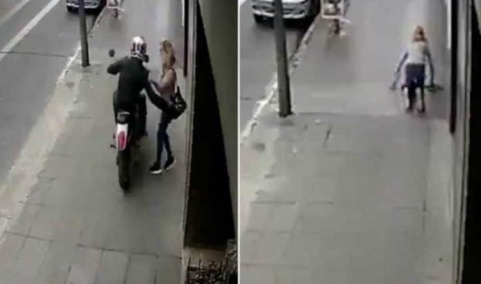 TERRIBLE AGRESIÓN. El ataque del motochorro hizo caer violentamente a la mujer al piso. Falleció al día siguiente por el golpe.