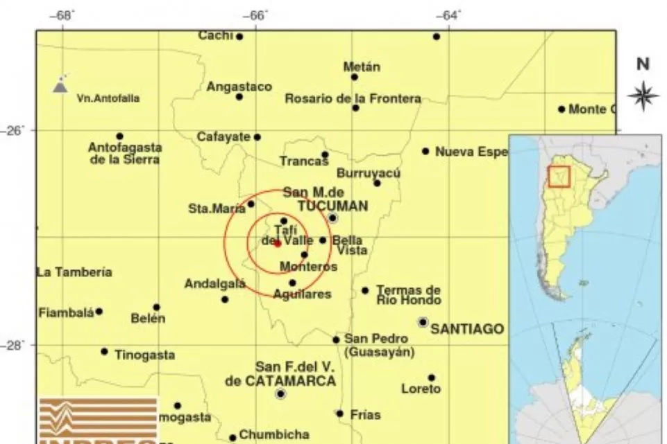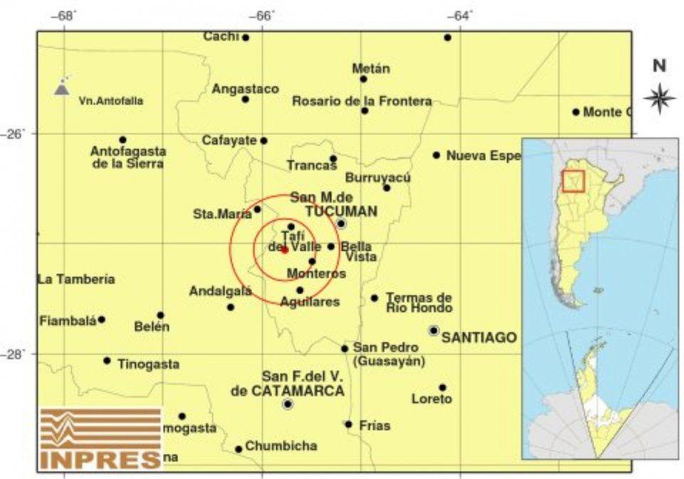 De acuerdo a lo informado por el organismo, el epicentro fue a unos 63 kilómetros al suroeste de San Miguel De Tucumán, a 154 kilómetros al norte de San Fernando Del Valle De Catamarca y a 24 kilómetros al sur de Tafí Del Valle.