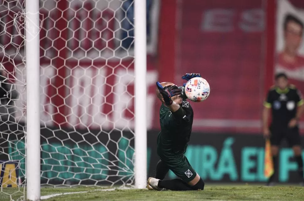 ¿CON AYUDA?. El arquero del “Rojo” adivinó la intención de Villa y contuvo el penal. Superstición o no, evitó la derrota. Twitter @Independiente