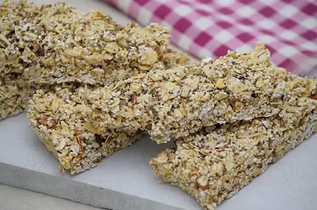 Estas barras saludables sirven tanto para que los chicos lleven a la escuela como para que los grandes las carguen para después del entrenamiento físico. Lo que más se destaca es su sabor a miel y su textura crocante.