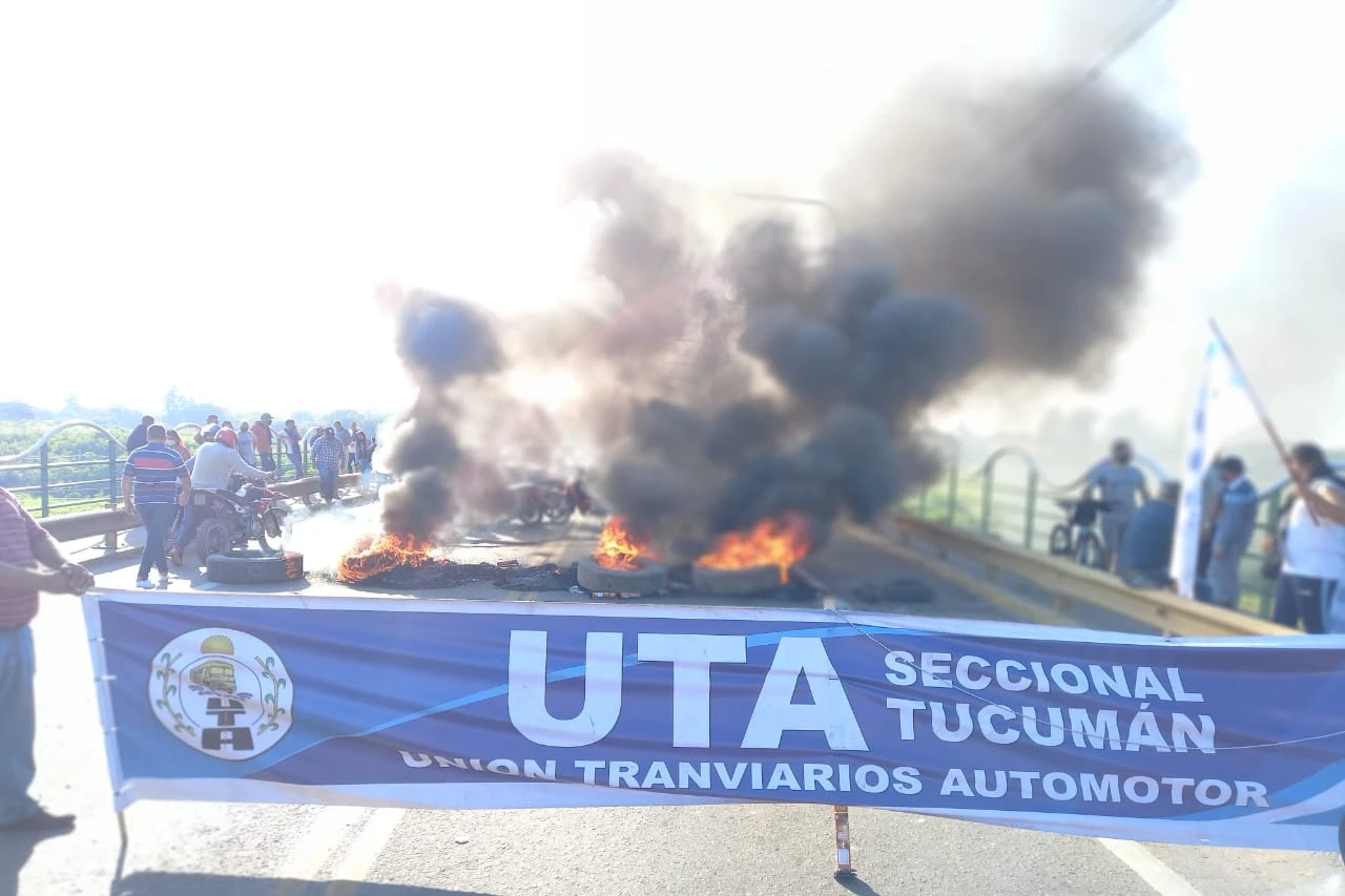 Desde temprano, choferes de ómnibus bloquean el acceso a Banda del Río Sali por el puente Lucas Córdoba, impidiendo que los colectivos dispuestos por el municipio de esa ciudad puedan trasladar a los trabajadores hacia la Capital. Lo mismo sucede en el Puente Barros y en San Cayetano.