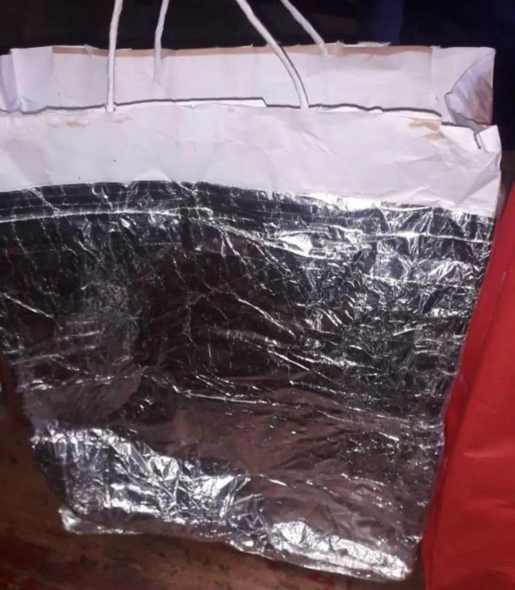 MECANISMO. El acusado usó una bolsa de papel forrada con aluminio para inhibir a las alarmas de robo.