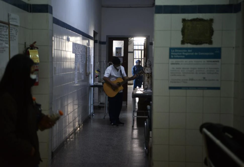 En la sala de pacientes Covid-19 del Hospital Regional “Miguel Belascuain”, de Concepción, el silencio consume la angustia e incertidumbre de los internados. De repente ese clima se quiebra y brota de la guitarra y la voz del enfermero Hugo Andrés Quiroga una canción que le asesta un sacudón al desánimo. Wonderful Tonight (Maravillosa esta Noche), de Eric Clapton, comienza a hacer milagros. Los ojos de hombres y mujeres convalecientes se iluminan y hasta algunos toman aliento para acompañar casi susurrando la interpretación en español. Los pulmones estragados por el virus se reactivan. Y se respira esperanza en el ambiente.