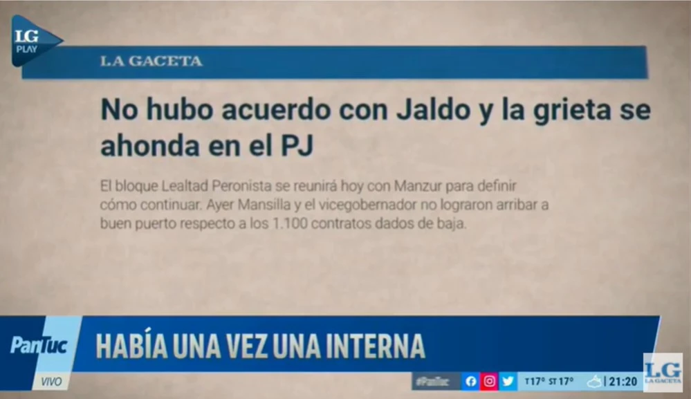 "Había una vez una interna" se tituló el informe especial que presentó la periodista Gabriela Baigorrí en "Panorama Tucumano" para resumir el quiebre de la relación del gobernador Juan Manzur con su vice, Osvaldo Jaldo.