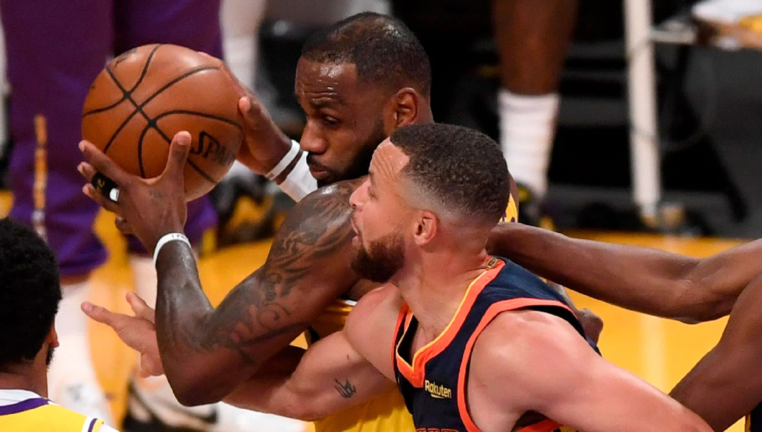 Warriors dominó a Lakers durante gran parte del partido, de la mano de un inspirado Stephen Curry, con 37 puntos y 6-9 en triples que intentó, pero en el último cuarto, el trío formado por James, Anthony Davis y Davis Schroder revirtió el marcador.