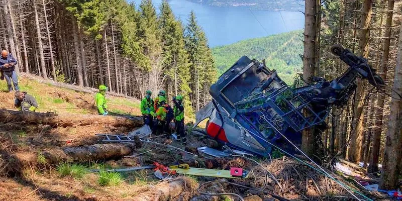 El accidente se produjo cerca de las 12.30 hora local a 100 metros de la última estación de altura del teleférico, que cubría el recorrido desde el lago Mayor hasta la montaña de Mottarone, de 1.490 metros, con 15 personas en su interior, según un comunicado del Ministerio de Infraestructuras y, según las primeras evaluaciones, la causa habría sido la rotura de un cable.