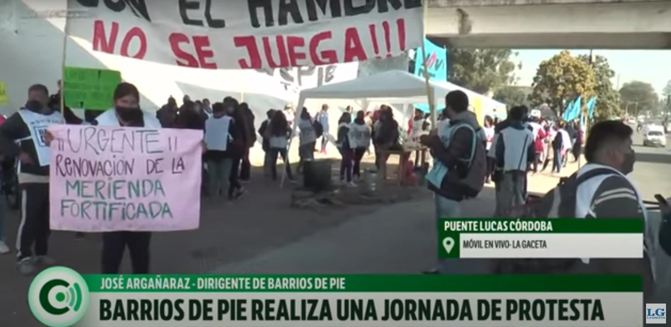La organización Barrios de Pie realizó hoy movilizaciones y más de 100 ollas populares en la provincia, según informaron, para reclamar asistencia alimentaria para sus comedores comunitarios. Una las manifestaciones centrales se concretó en el puente Lucas Córdoba, en el acceso a la capital.
