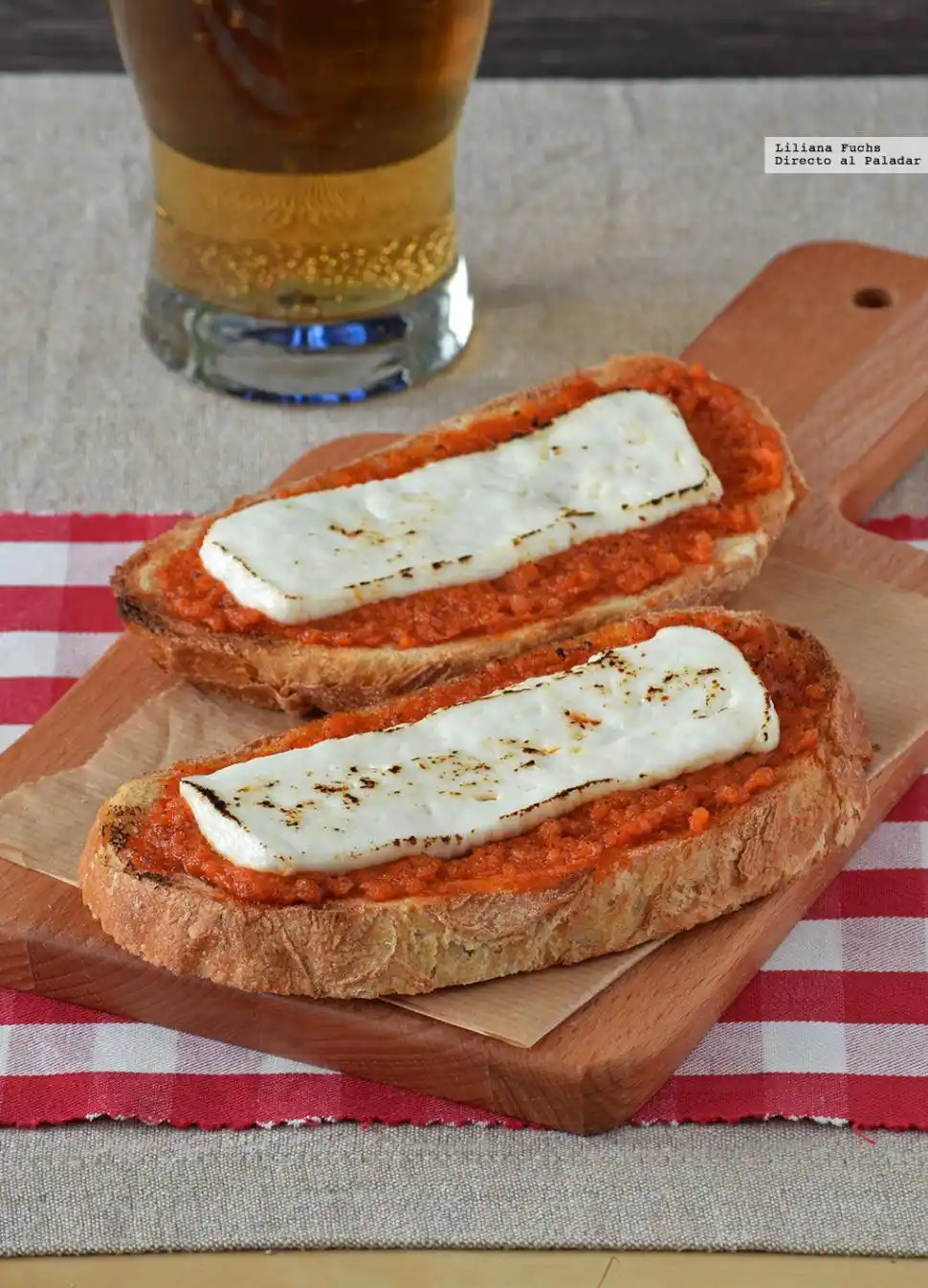 Rodajas de pan de hogaza, de masa madre u otro a tu gusto. Algún embutido que permita ser untado o alguna pasta a elección (pasta de zanahorias, de tomate, de aceitunas, etcétera. Queso fresco y aceite de oliva.