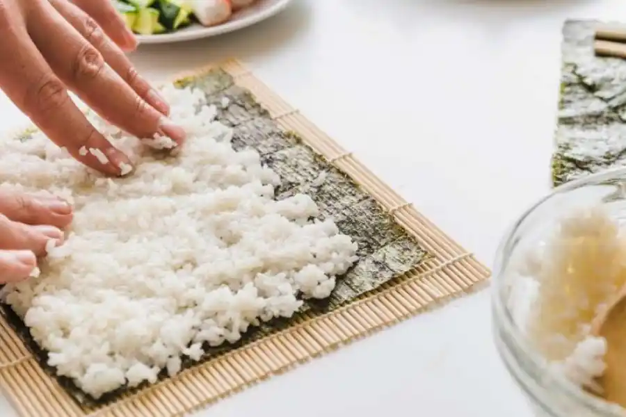 Ingredientes: tres tazas de arroz variedad japónica, tres tazas de agua, 85 cc de vinagre de arroz, 30 g de azúcar y 15 g de sal.