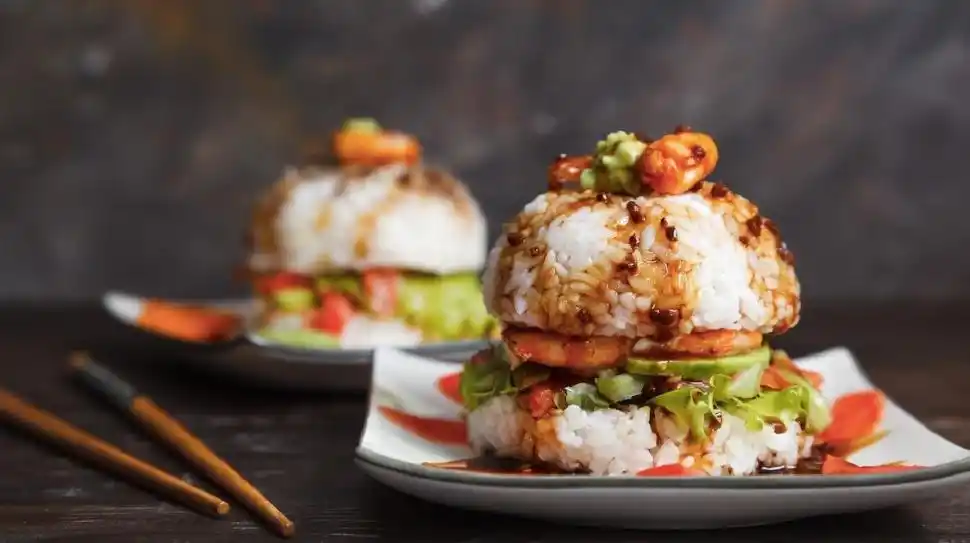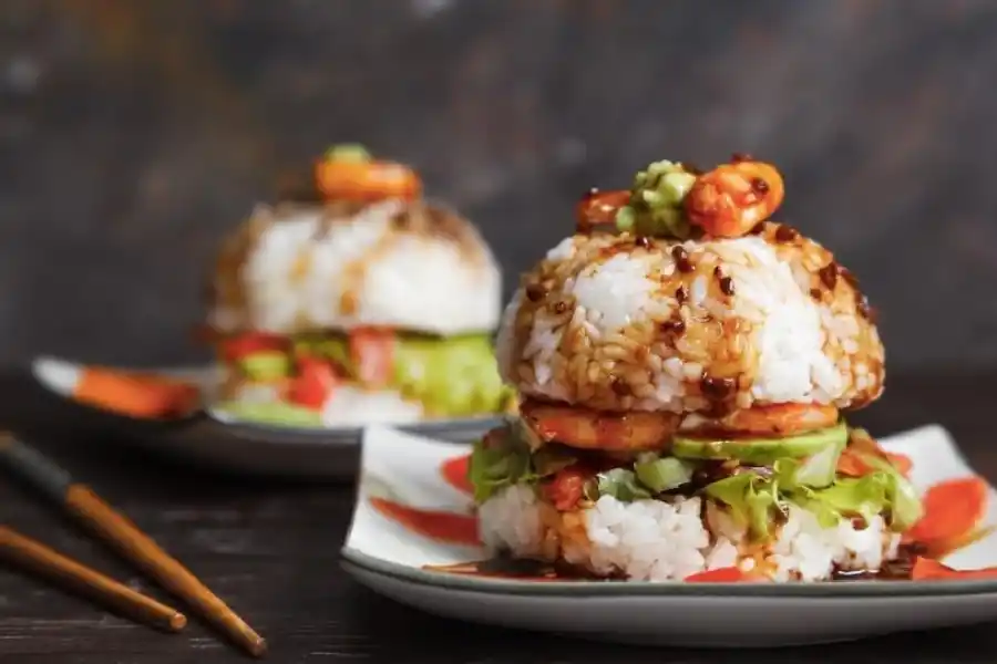 6. Cerrar la hamburguesa con la otra pieza de arroz y decorar con las semillas.