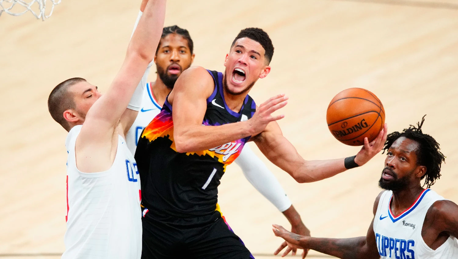Sin Chris Paul afectado por coronavirus, Phoenix Suns derrotó anoche a Los Angeles Clippers por 120 a 114, en la primera final de la Conferencia Oeste de la NBA.