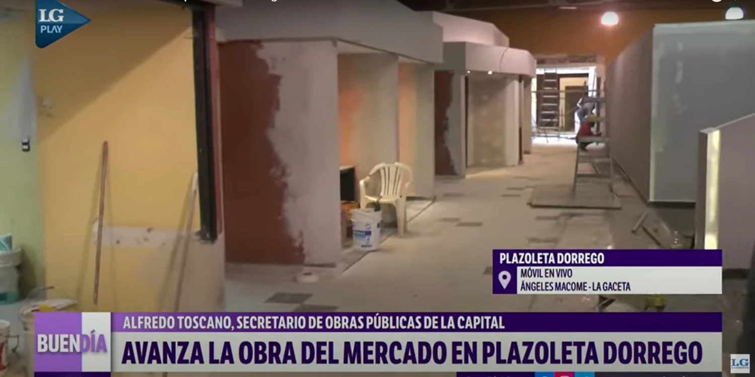 El secretario de Obras Públicas de la capital, Alfredo Toscano, dijo que los trabajos en el mercado municipal plazoleta Dorrego “están entre un 75% y 80%” de desarrollo y preveía que a mediados de julio el centro comercial estará listo para la apertura.