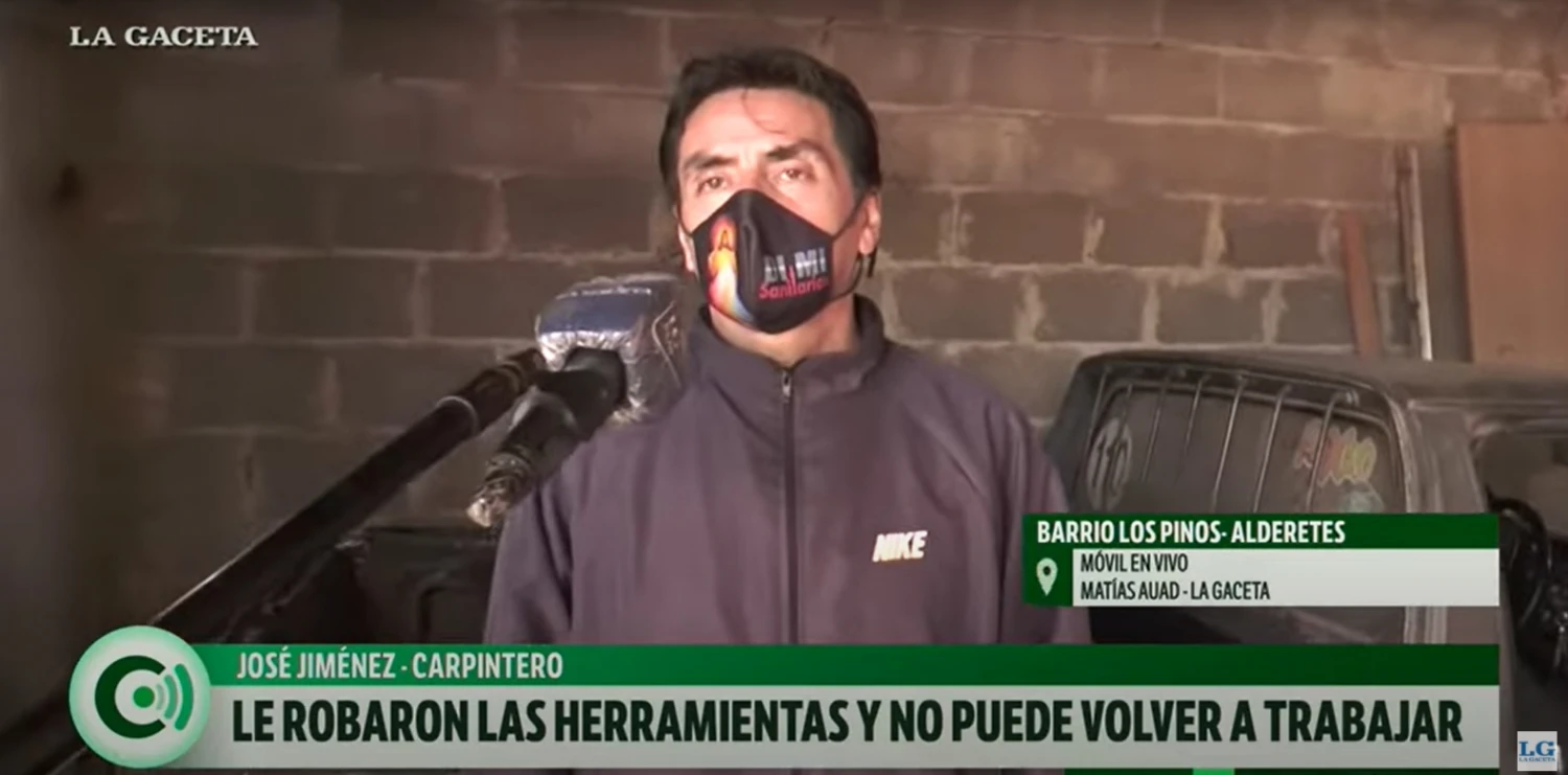 Un robo le impide hoy seguir trabajando. Días atrás, un carpintero se dio con que desconocidos le habían sustraído de su camioneta todas las herramientas. En ese momento, él estaba trabajando en una propiedad de Yerba Buena. “No tengo nada ahora. No tengo cómo subsistir”, dijo triste.