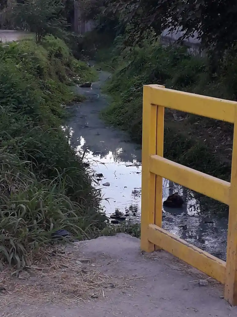El canal de desagüe pasa por medio de la escuela Juan B. Terán de Lastenia y está lleno de desecho químico, dice un vecino.