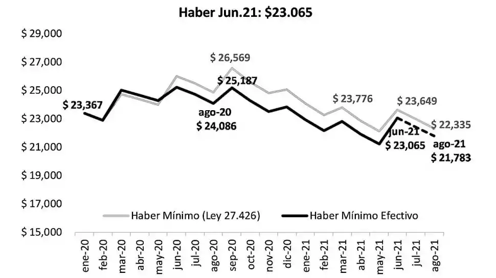El sondeo efectuado por el Ieral, que depende de la Fundación Mediterránea, remarcó que “la variación interanual de los haberes para agosto próximo, con respecto a igual mes del año pasado, implica un aumento en términos reales del 10% para quienes perciben haberes mínimos”, al tiempo que para quienes cobran dos haberes es del 1%.