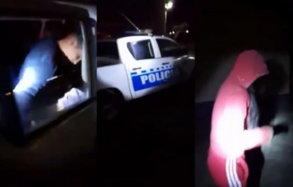 Según se puede observar en las imágenes, se escucha al hombre que filma y se acercar al móvil policial mientras otra persona alumbra con una linterna: “¿Qué están haciendo con una menor de edad ahí?”. Abre la puerta trasera del patrullero y uno de los oficiales la cierra abruptamente. Allí se ve a uno de los uniformados con los pantalones bajos.
