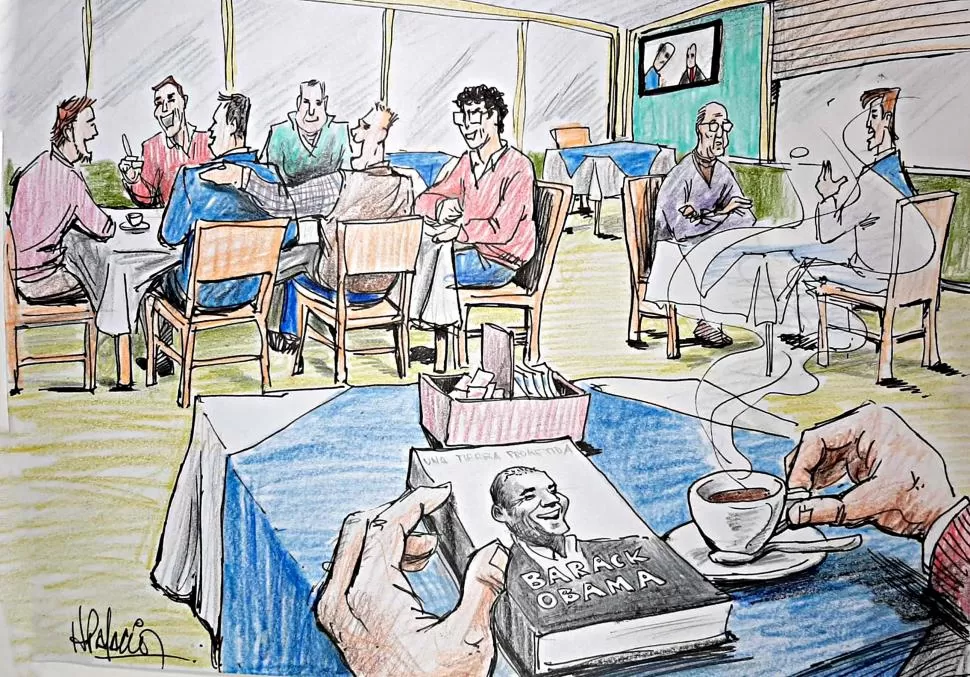 Era un momento mágico. Sólo faltaba que el pocillo llegase a la mesa. Para darle el golpe mágico, saqué de la mochila el libro gordo de Barack Obama. Estaba marcada la página de la última vez en que fue abierto. El placer era total y una mezcla de tristeza y melancolía trasuntaban el papel y la tinta. Referían a los últimos momentos de vida de la madre del ex presidente de los Estados Unidos. La primera campaña para ser senador le quitaba tiempo para darle el último adiós a su progenitora, que ya no podía con los rayos ni con el cáncer.