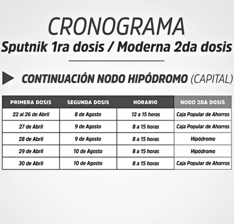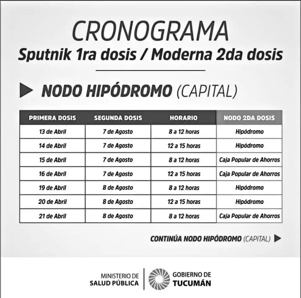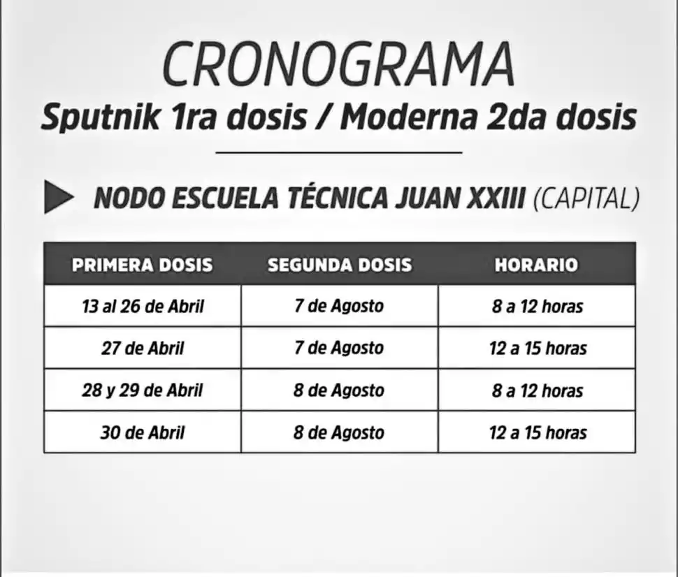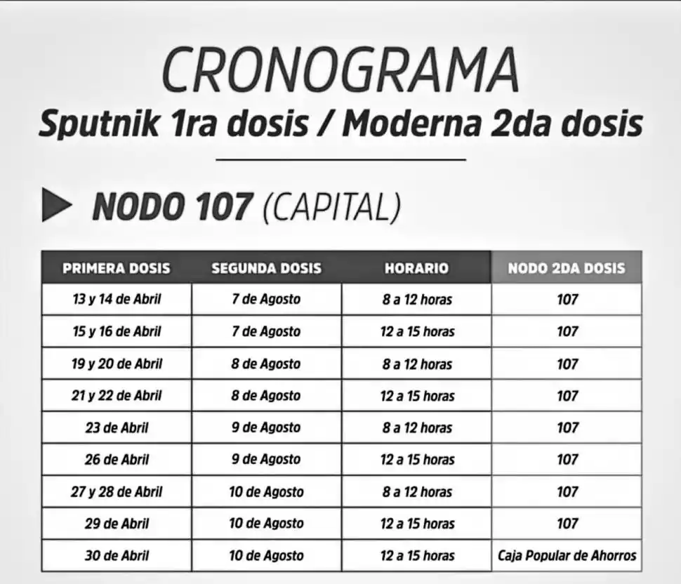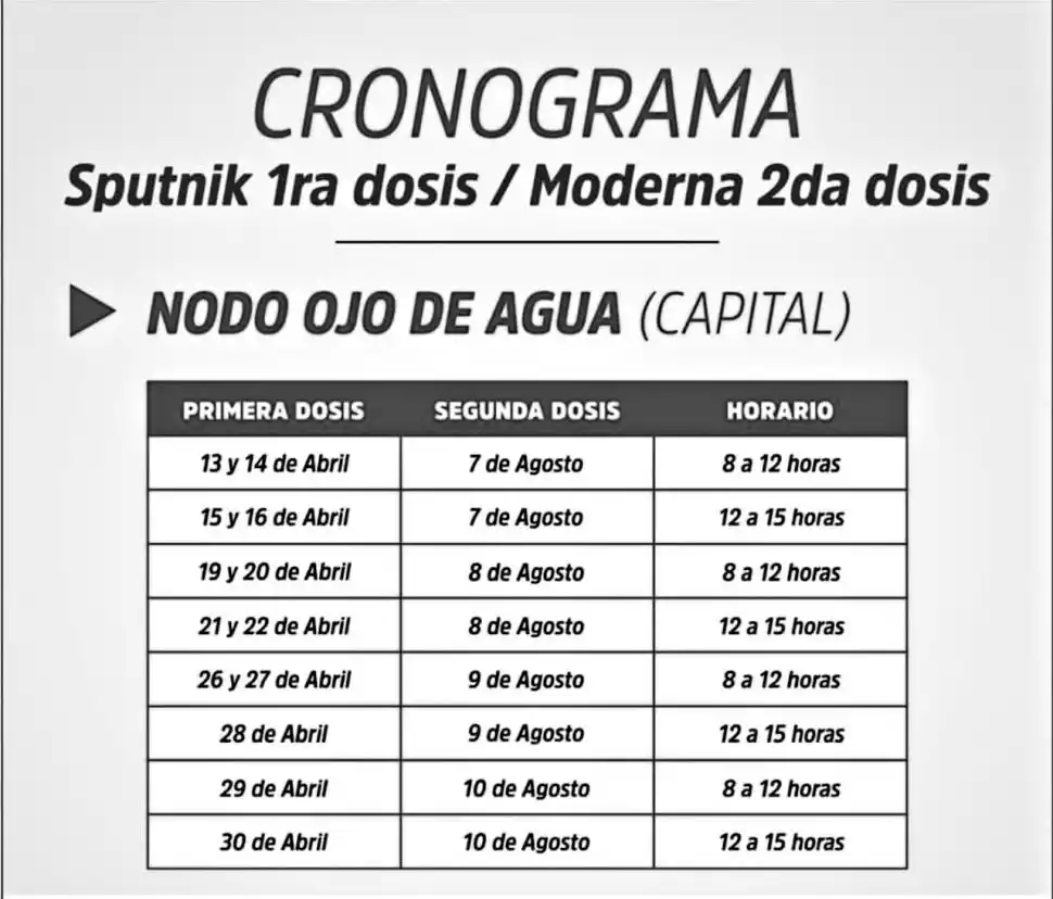 Ayer, el Siprosa anunció el cronograma de vacunación que comenzará hoy en los nodos de la provincia para quienes habían recibido la vacuna rusa entre el 13 de abril (comienzan hoy) y el 30 de ese mismo mes (seguirá en el resto de los días).