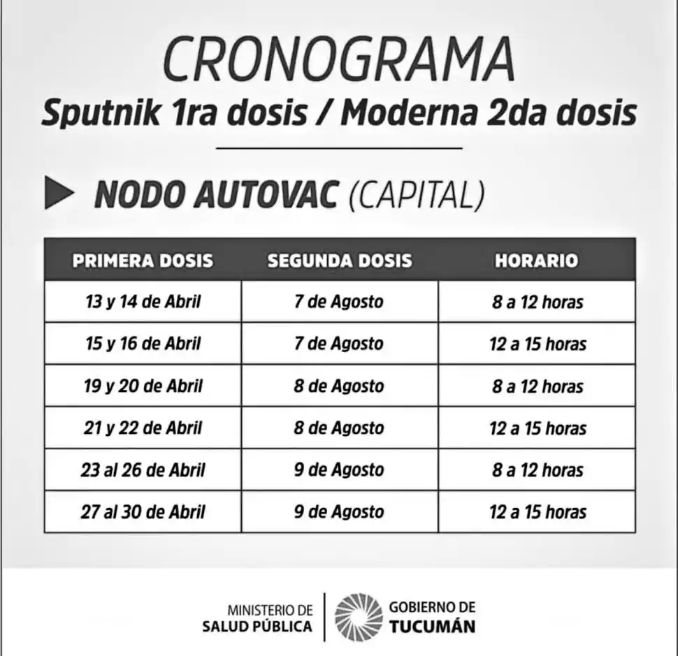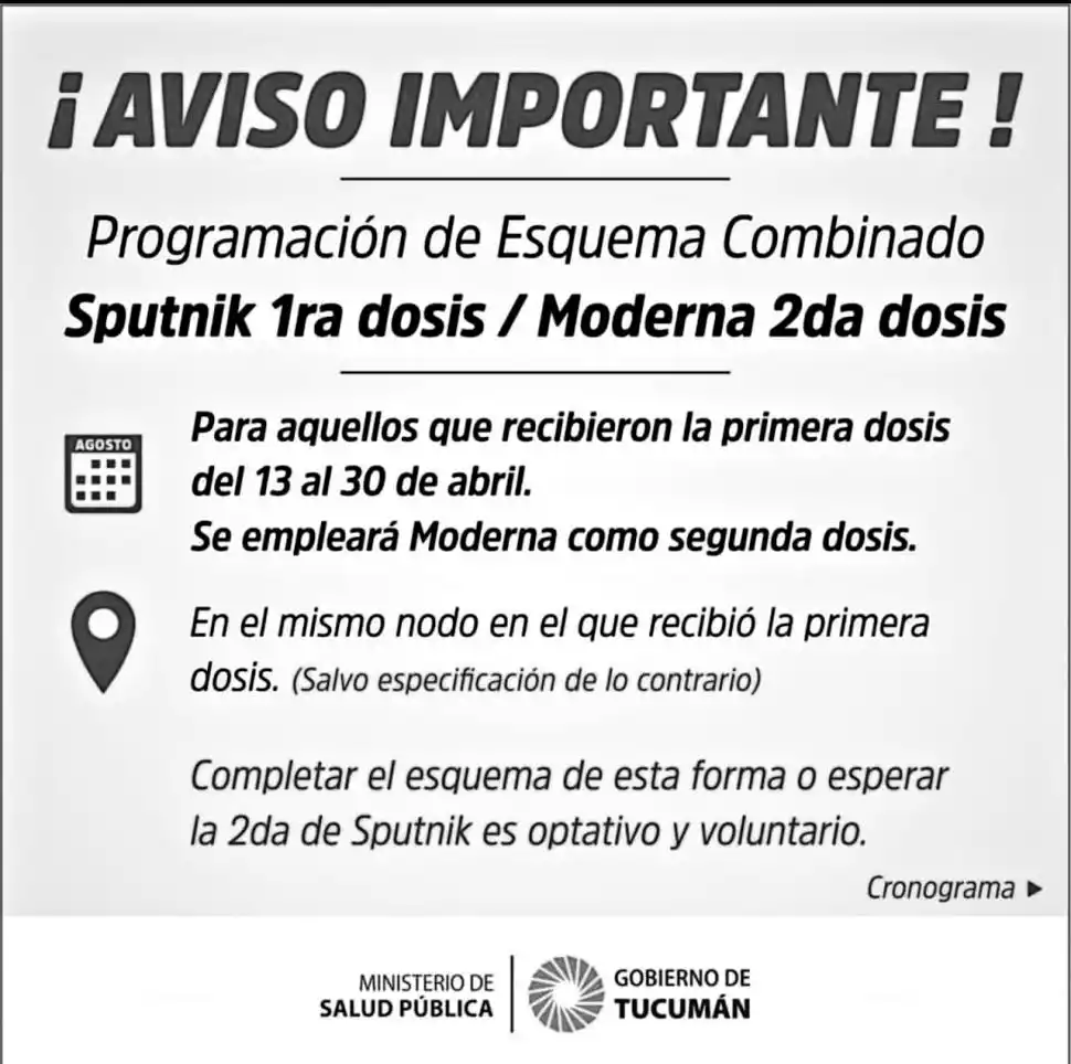 Los tucumanos que recibieron la primera dosis de Sputnik y que estaban a la espera de la segunda podrán desde hoy comenzar a completar el esquema de vacunación con suero del laboratorio Moderna que también llegarán hoy a Tucumán.