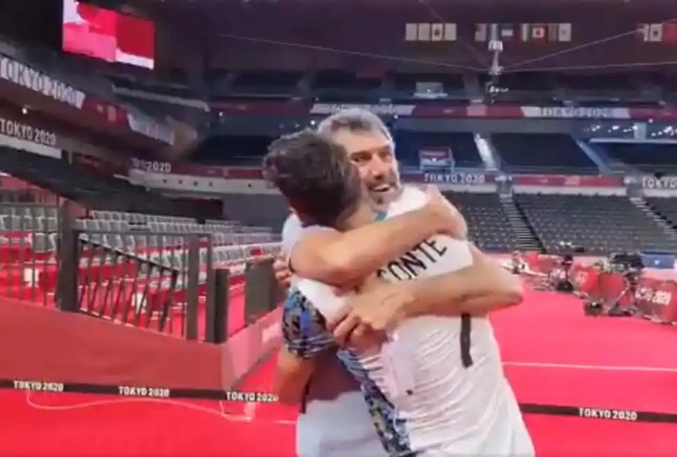La efusividad sobrepasó a Hugo Conte que rompió el protocolo y bajó de la zona de prensa (fue comentarista de un canal deportivo) del Ariake Arena para abrazar a su hijo, Facundo. Como él, Conte padre ganó una medalla de bronce en los Juegos Olímpicos de Seúl 1988, también venciendo a Brasil en el tie-break. Los Conte marcaron un hito nacional: por primera vez un padre y un hijo obtienen una medalla.