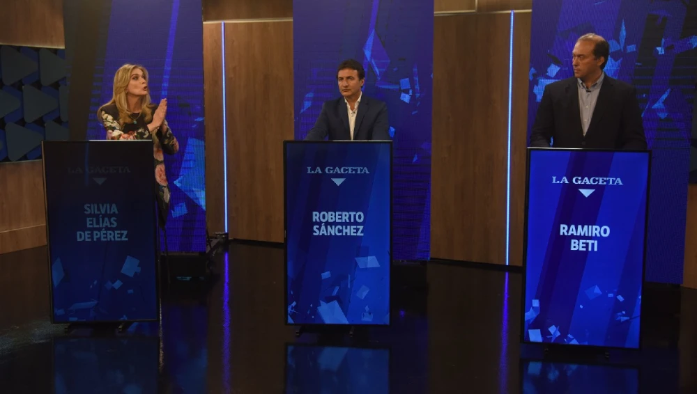 La primera parte del debate de las cabezas de las listas de precandidatos a diputados que pujan dentro de la alianza Juntos por el Cambio -la senadora Silvia Elías de Pérez ("Cambiemos Juntos"); el intendente de Concepción, Roberto Sánchez ("Juntos por Tucumán"), y el presidente del PRO y concejal de la "Perla del Sur", Ramiro Beti ("Juntos para Construir")- transitó de manera armoniosa hasta la parte final de los cuatro minutos libres, destinados a que los postulantes digan lo que quieran.