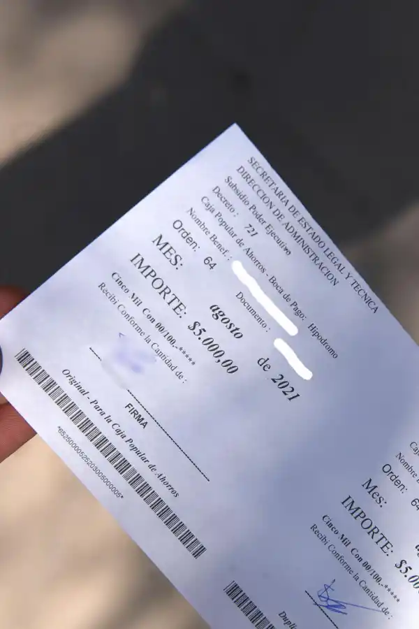 La mayoría de las ayudas que otorgó ayer el Gobierno fueron de $ 5.000, según consta en los recibos que pudo corroborar este diario, pero también se vieron otros por $ 4.000.