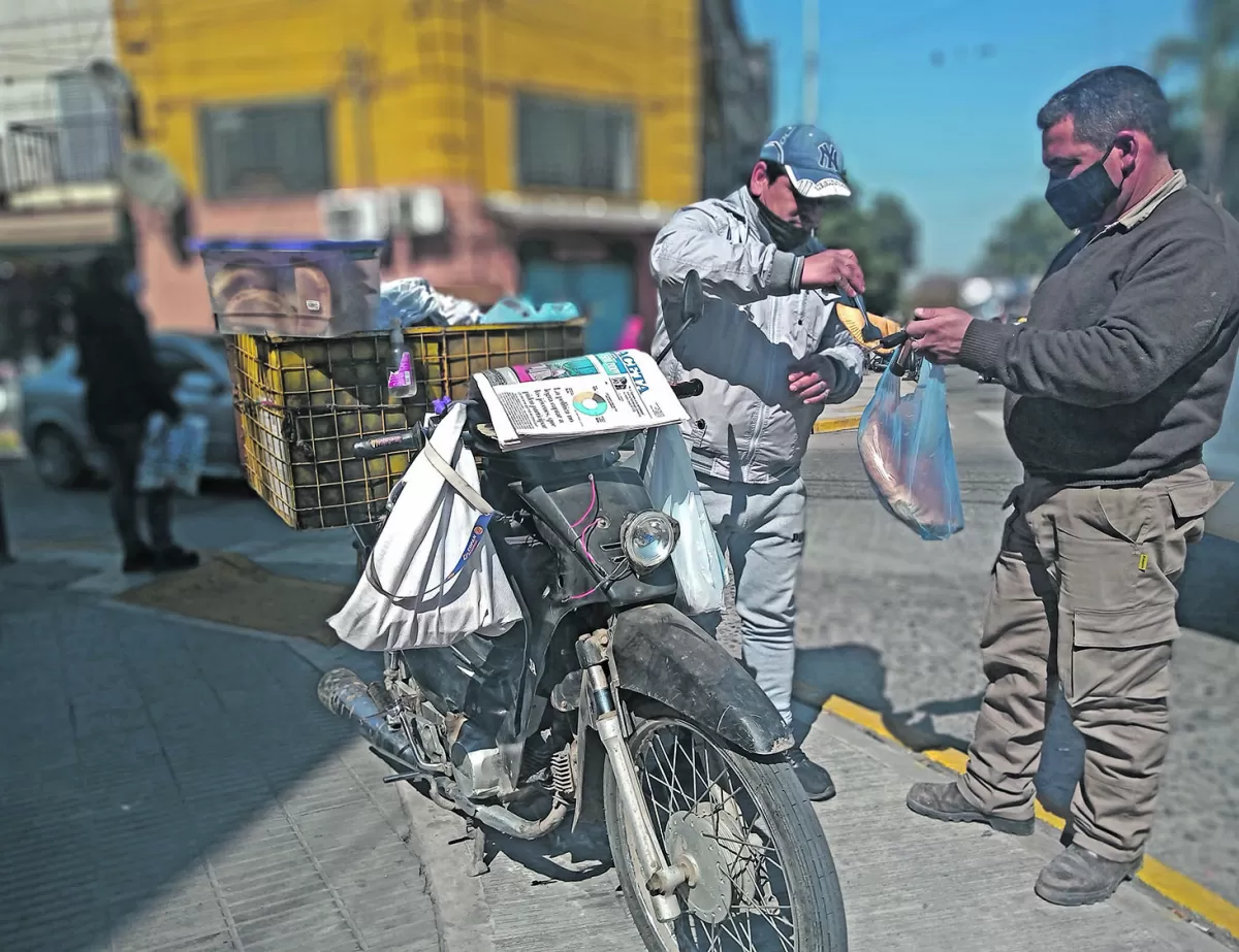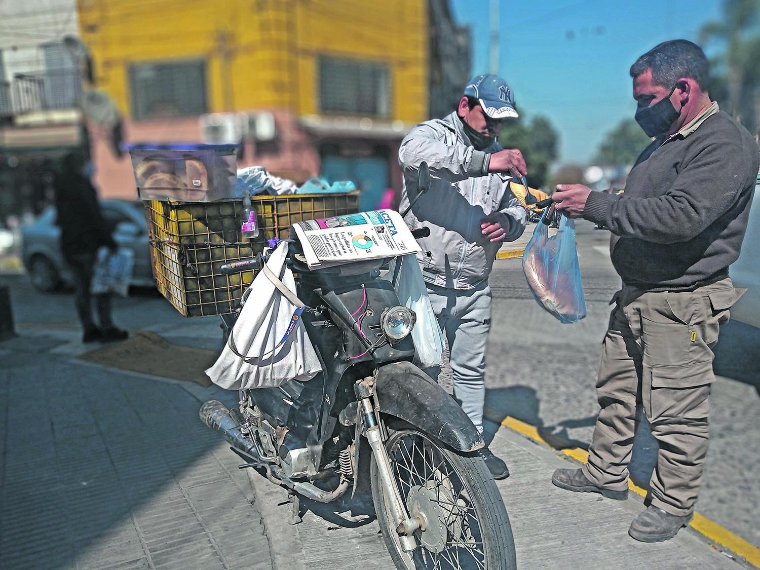 Miguel Galván, de 42 años, tiene una moto Honda de cilindrada 110 que acusa el ajetreo del tiempo y del maltrecho camino que recorre todos los días. El hombre es de la localidad de Santa Cruz (Simoca), ubicada a unos 12 kilómetros al noreste de Concepción, por la ruta 328. Desde ese pueblo va a “La Perla del Sur” a diario para vender pan casero, cacho y empanadillas. Carga un enorme canasto con el que no siempre regresa a casa vacío. Llueva o truene, Miguel se levanta a las cinco de la mañana para partir a cumplir con su tarea de vendedor. Todos los días se lo ve infaltable en la esquina de San Martín y Colón.