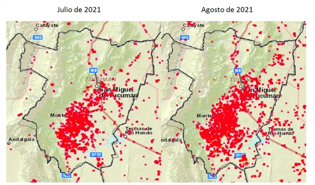 Los datos satelitales demuestran que lejos de disminuir los focos de fuego, principalmente por quema de caña en pie, restos de cosecha, pastizales en banquinas, basurales, han aumentado durante el mes de agosto con respecto a los registrados en julio de 2021.