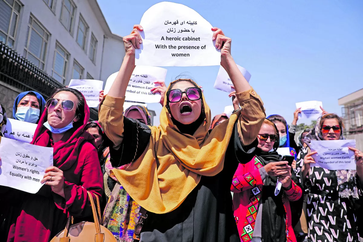 La muestra está, según las imágenes que mostró la agencia de noticias de Oriente Tolo News, en la represión a las mujeres que reclaman lugares en la nueva administración política de Afganistán.