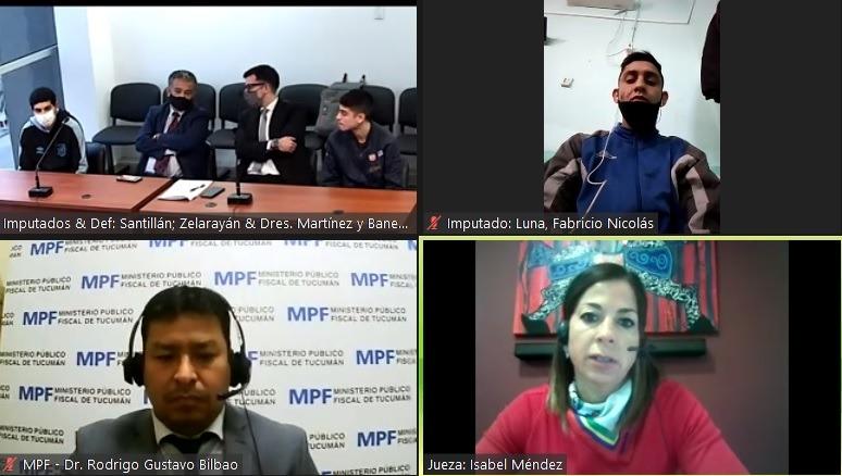 En la audiencia de hoy, el Ministerio Público Fiscal, víctimas y defensas acordaron la condena de Fabricio Nicolás “Messi” Luna (21), Ramón Roberto “Cito” Santillán (21), Eduardo Agustín “Cuby” Zelarayán (23). Los tres fueron acusados de ser coautores penalmente responsables del delito de robo doblemente agravado por ser cometido con el empleo de arma de fuego no operativa, y en poblado y en banda. En la causa intervino la Unidad Fiscal de Robos y Hurtos II, dirigida por Pedro Gallo.