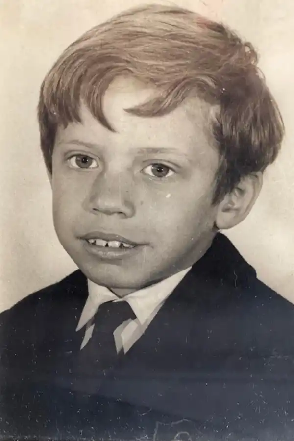 “Esa foto (9 años) representa una etapa muy linda en mi vida”, dice. Iba al colegio Nuestra Señora de Guadalupe, en CABA. en doble turno. “Almorzaba con todos mis compañeros y jugábamos al fútbol en cada recreo. De niño soñaba con ser médico, pero una vez me corté el dedo sacándole punta a una flecha con un cuchillo. Perdí tanta sangre que perdí el conocimiento” y finalizó esa vocación.