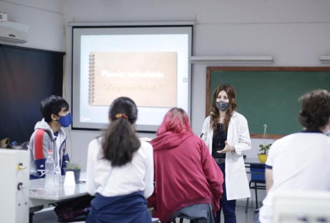 "Estamos trabajando como eje transversal la temática de planeta sustentable, que es adaptado a cada laboratorio. En el laboratorio de Física trabajamos en recolección y tratado de residuos para reciclar y reducir", explicó la profesora del Laboratorio de Física y Matemática, Claudia Ríos.