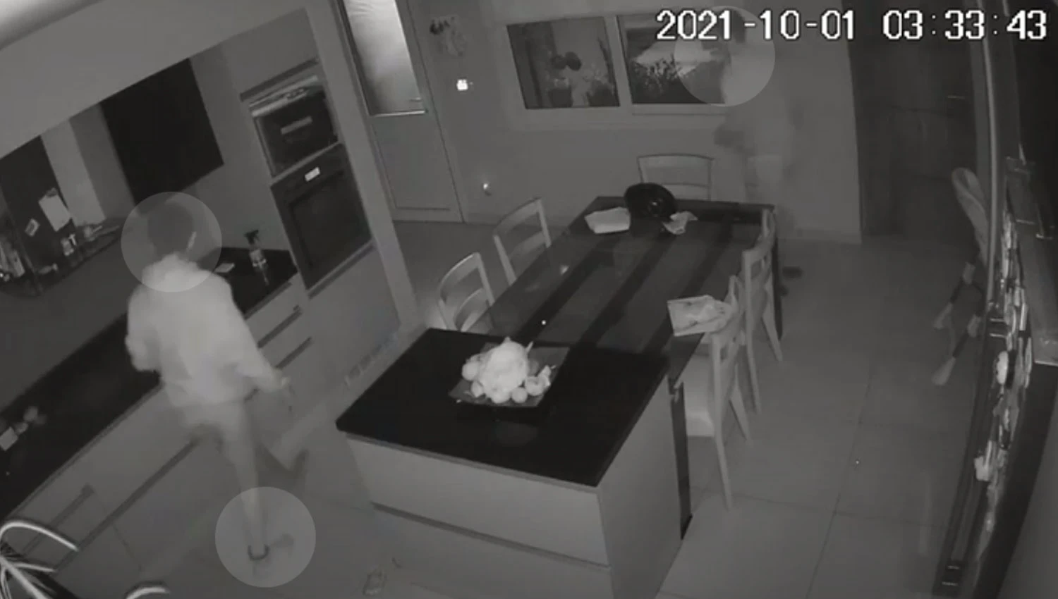 Las imágenes muestran cómo dos desconocidos ingresaron a una casa y se movieron por la cocina y los espacios comunes, sin poder llevarse objetos de valor.
