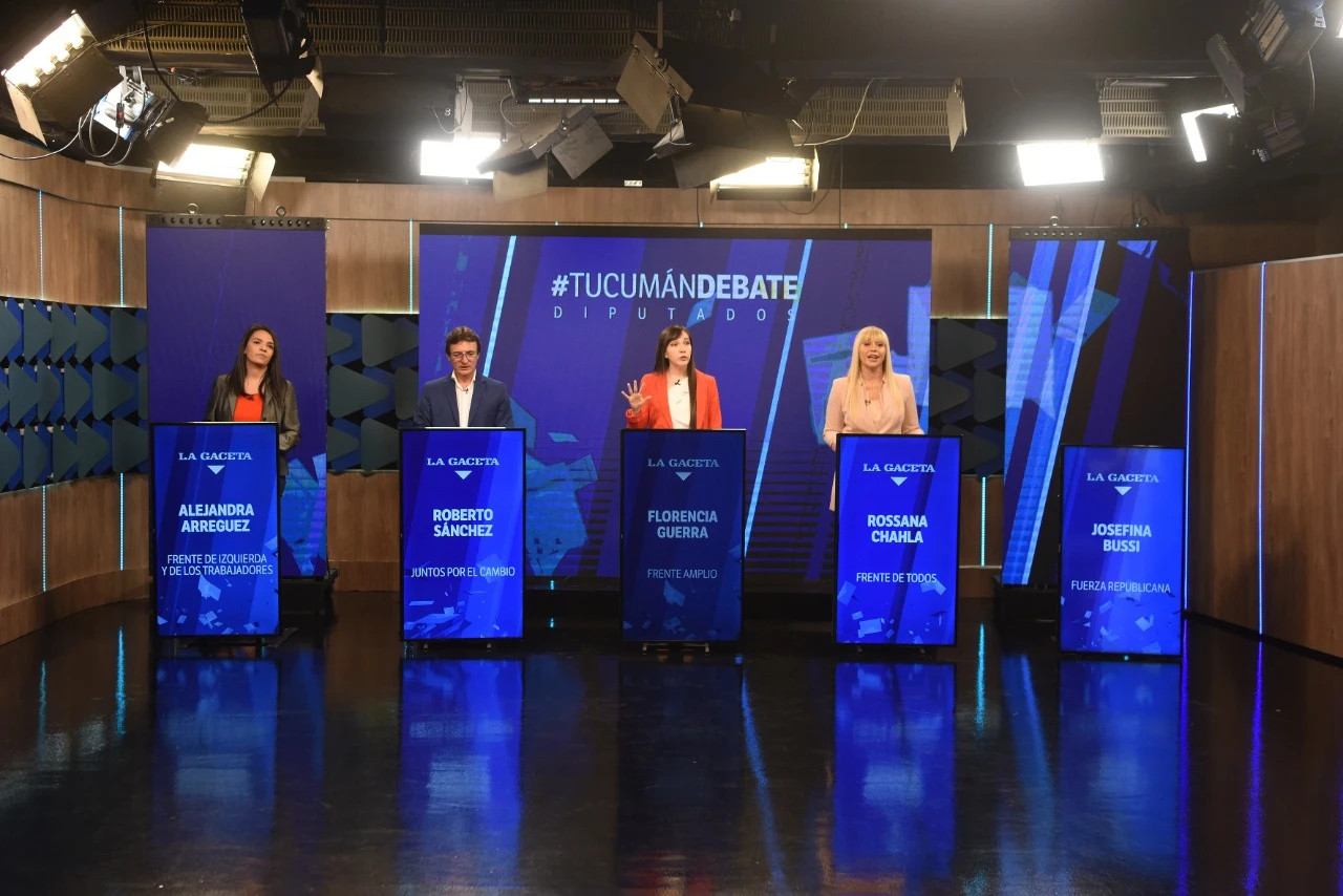 Rossana Chahla (Frente de Todos), Roberto Sánchez (Juntos por el Cambio), Alejandra Arreguez (Frente de Izquierda) y Florencia Guerra (Frente Amplio) debatieron sobre temas relacionados con la economía regional y las obras públicas. En tanto Josefina Bussi (Fuerza Republicana) no participó por ser contacto estrecho de covid-19 positivo.