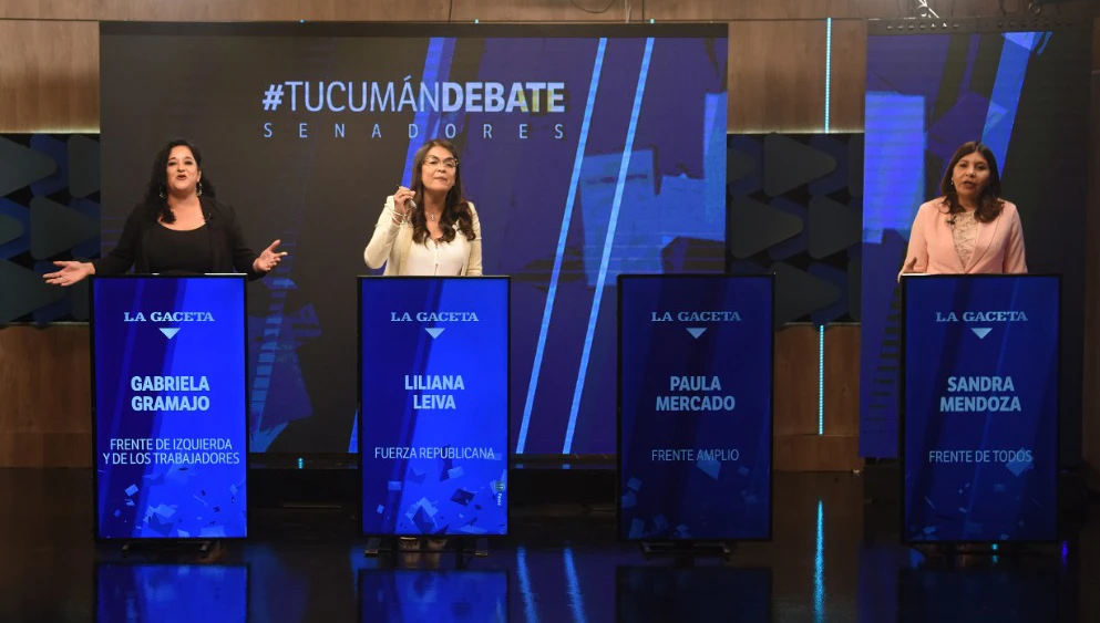En esta ocasión, participaron las postulantes en segundo término para la categoría senador. Estuvieron presentes Gabriela Gramajo -del Frente de Izquierda y de los Trabajadores-Unidad (FIT-U)-, Liliana Leiva -de Fuerza Republicana (FR)- y Sandra Mendoza -del Frente de Todos (FdT)-. Las candidatas Beatriz Ávila -de Juntos por el Cambio (JxC)- y Paula Mercado -del Frente Amplio por Tucumán- avisaron que no podrían participar. La primera, debido a que tuvo que asistir a la sesión de Diputados, en Buenos Aires; Mercado, debido a problemas de salud de su padre.