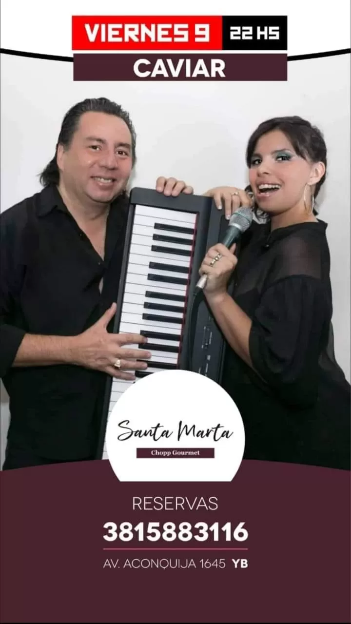 También habrá show con repertorio internacional en la hostería municipal Atahualpa Yupanqui de Tafí Viejo (Paysandú al 2,400), con la actuación desde las 22 de Caviar, el dúo de María Cecilia Pérez Villada y Francis Moreno (foto). En Veracruz Bar (avenida Soldati 684) se presentará Martín Olivera; mientras que en el restobar Beckett’s (25 de Mayo 783) la cena show será amenizada por Bautista Sosa y su repertorio melódico, latino y de pop rock. En Santa Marta (avenida Aconquija 1.645) habrá tangos con Mariela Acotto y Julián Morel.