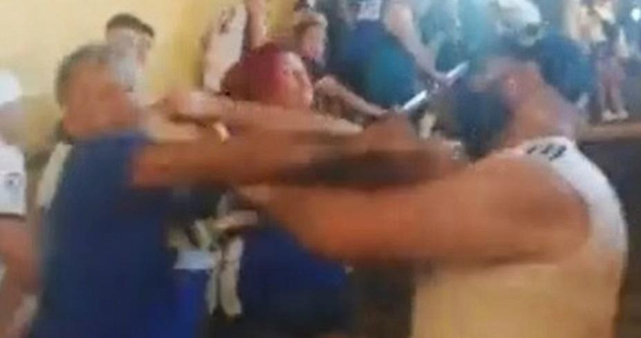 "¡Qué decís, boluda!", se le escucha decir al barra al comienzo del video. "¡Ey, la concha de tu madre!", responde una mujer de musculosa azul que acompaña a Marta, quien segundos después alcanza a tirarle dos patadas al agresor. "¡Hijo de mil puta, mogólico!", vuelve a oírse de fondo. Y otra vez arremete la persona de musculosa azul: "¿Qué 'ya está'? ¡'Ya está', las pelotas! Porque acá se hacen todos los cocoritos y si se llegan a zafar los cago a palos a todos! ¡Gordo de mierda, hijo de puta!".