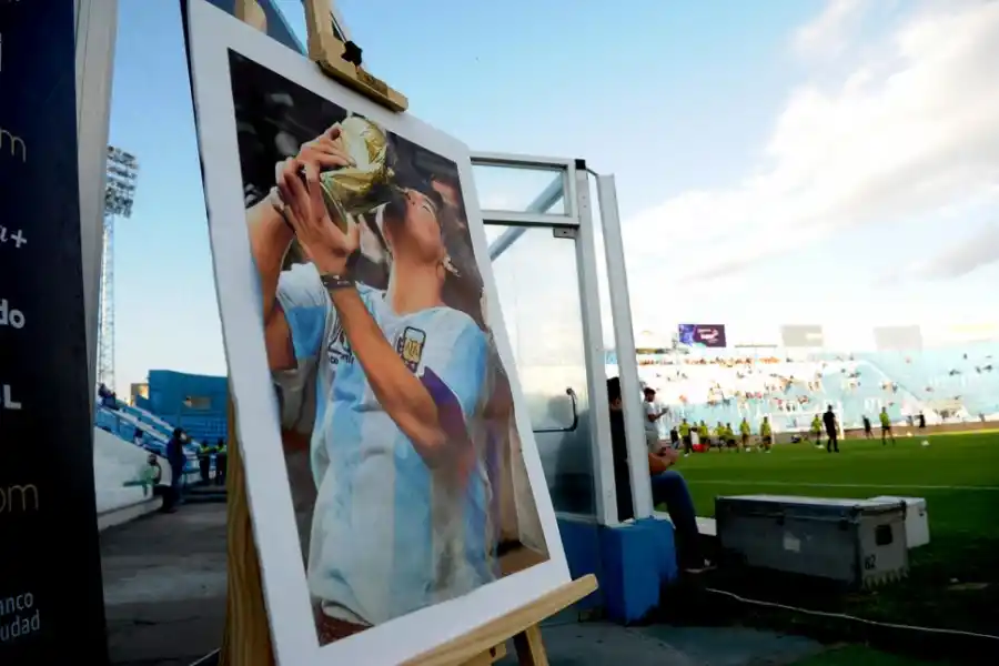 En conmemoración del primer aniversario del fallecimiento de Diego Armando Maradona, antes del comienzo del partido entre Atlético y Defensa y Justicia, los jugadores de ambos equipos, más la terna arbitral, formaron un número diez en el centro del campo de juego, con un cuadro del “Diez” (foto), alzando la Copa del Mundo.