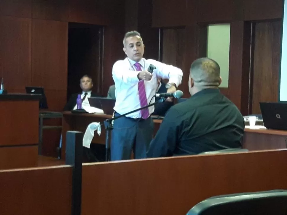 Cuando pasó a declarar Figueroa, se repitió la secuencia, explicando la teoría desde la distancia en la que había estado el otro acusado.