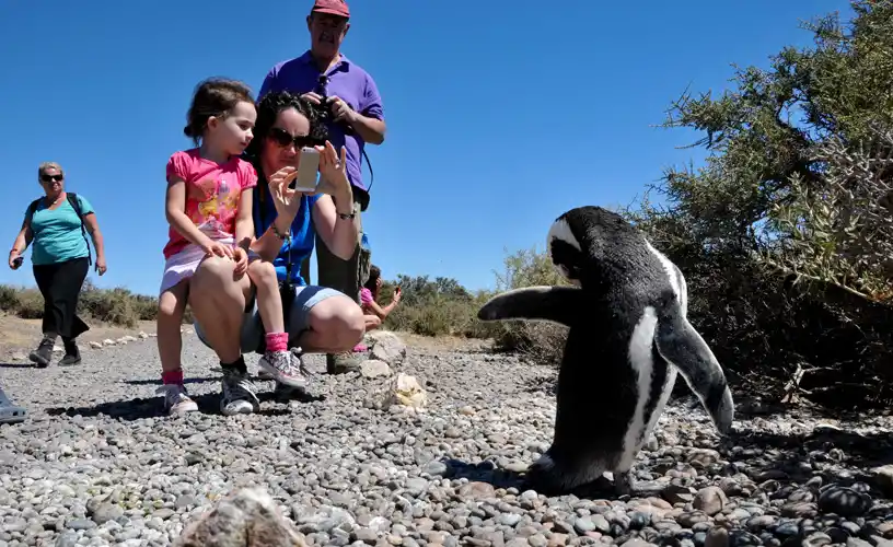 Poco menos de 200 km al Sur de Madryn habita la mayor colonia de pingüinos magallánicos del mundo, y podes acceder bastante fácilmente. Bastante, porque 107 de esos kilómetros son de ripio, pero vale la pena. Una estrecha franja de costa penetra en el mar 3,5 km: el declive de sus playas es suave, y eso permite a los pingüinos -que llegan todos los años para anidar- aparearse, tener sus crías y emprender luego el viaje de regreso hacia el noreste de Sudamérica. Es un área protegida que cuenta con infraestructura mínima: sanitarios, quick shop (conseguirás agua y algo de comer, pero puede ser preferible llevar) y oficina de cobro de entradas. Se recomienda llenar el tanque de nafta antes de salir de Madryn.