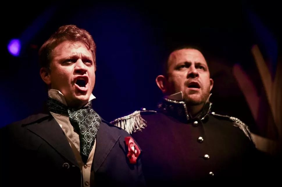 DUETO. Christian Cúneo y Mariano Corregidor interpretan una escena de la obra musical “Los miserables”. prensa