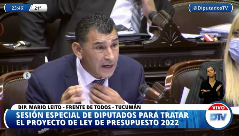 En su exposición en el recinto, el diputado tucumano del Frente de Todos, Mario Leito, destacó las obras incluidas para la provincia. "Hace dos días el presidente estuvo en Tucumán en la ciudad de Monteros, que es una de las capitales alternas. El presidente no fue con las manos vacías. Llegó para explicarle a los tucumanos que en este Presupuesto vamos a poder disponer de 33 mil millones de pesos para la obra pública en Tucumán".