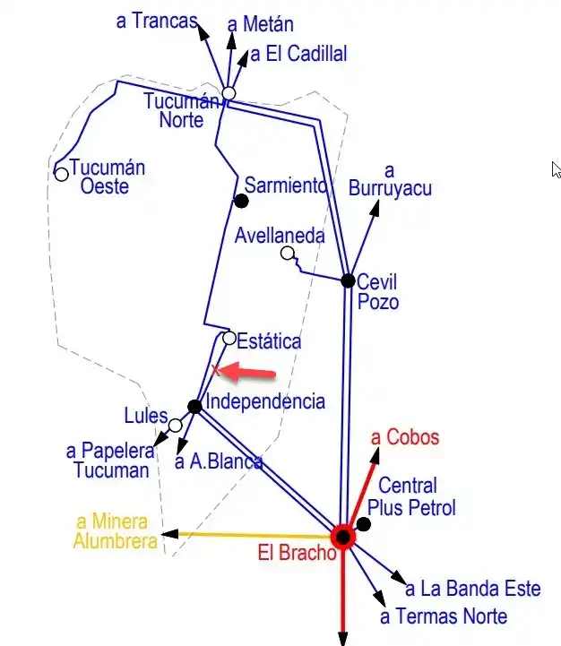 El tejido de cables que atraviesa la provincia bajo tierra transporta electricidad al norte y al oeste de Tucumán por dos vías: un doble tramo desde la Estación Transformadora (ET) El Bracho hasta la ET de Cevil Pozo y de ahí se distribuye a diferentes localidades; la otra es un doble tramo que también parte desde la ET El Bracho hasta la ET Independencia, que se conecta con la ET Estática, desde ahí una sola línea transporta electricidad al oeste y al norte, y a las demás localidades (ver imagen).