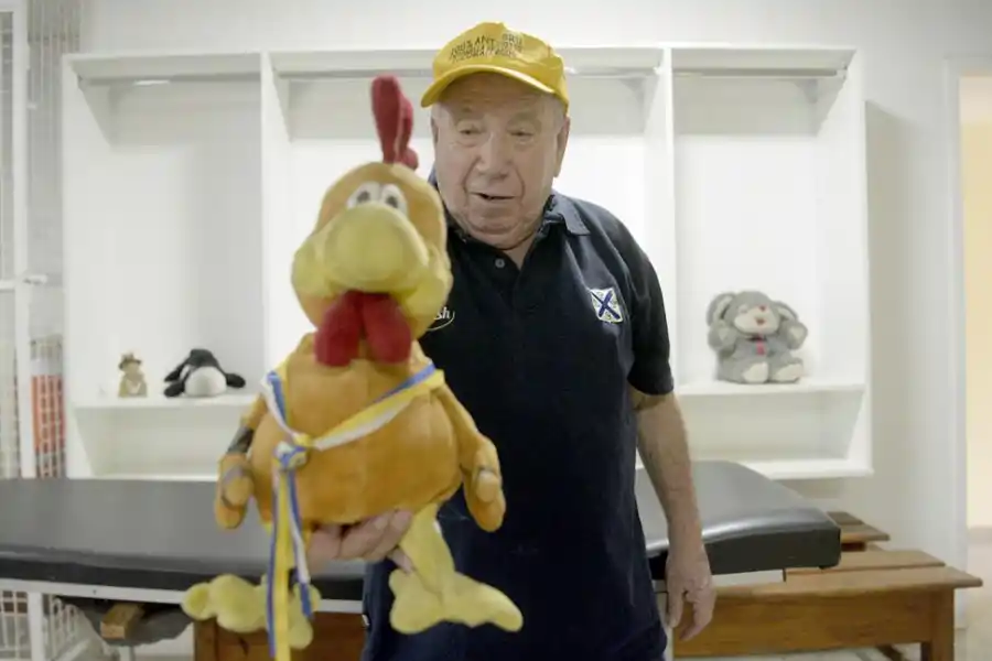 El histórico utilero y masajista de Lawn Tennis y de los Naranjas no puede evitar emocionarse cada vez que recuerda todo el cariño que le han brindado. O mejor dicho, que le han devuelto, porque él siempre dio todo lo tenía: su lealtad, sus historias, su sentido del humor y su eterna vocación de servicio. Oscar es un apóstol del rugby. “Yo les decía a los chicos que me dieran sus botines para que se los lustrara. No lo podían creer. Pasa que siempre fui muy detallista. Me gustaba hacer cosas distintas para que los jugadores se sintieran motivados, con ganas de salir a comerse la cancha. Por ejemplo, ponía globos para festejar cuando alguno cumplía años o le daba un premio al jugador más elegante. Lo elegíamos con el capitán”, recuerda “La Villa”, que también solía adornar el vestuario con animales de peluche. Cada uno con su propia historia e identidad. Entre una orca y un elefante asoma una gallina, representativa del apodo del club en el ambiente rugbístico. Y también un gallo. “Ese es el ‘Gallo’ Cabrera. El mejor jugador que tuvo este club”, corrobora Oscar.