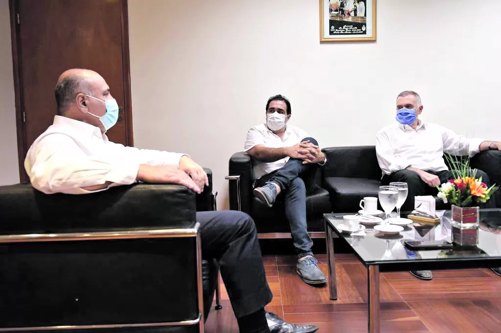 La visita de Juan Manzur a Tucumán le ha permitido al vicegobernador Osvaldo Jaldo volver a la sede legislativa, al menos públicamente. Ambos y el presidente subrogante de la Cámara, Sergio Mansilla, se reunieron en el despacho del ex intendente de Aguilares. Sucede que la oficina de la Presidencia, la que habitualmente ocupaba Jaldo, estaba cerrada con llave. Sin embargo, el tranqueño se siente como en su casa.