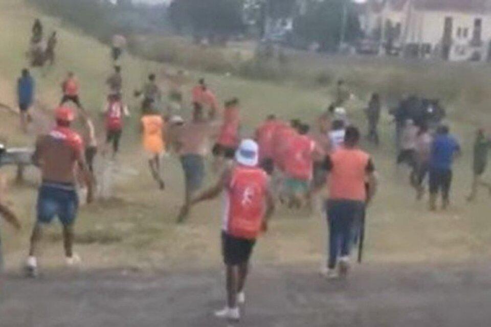 Ante esta situación, un grupo de la barra del "Rojo" que se trasladaba en la micro hacia el estadio decidió bajarse y correr a los piqueteros. Lo que generó un enfrentamiento en donde se revolearon piedras, palos, botellas y demás elementos contundentes.